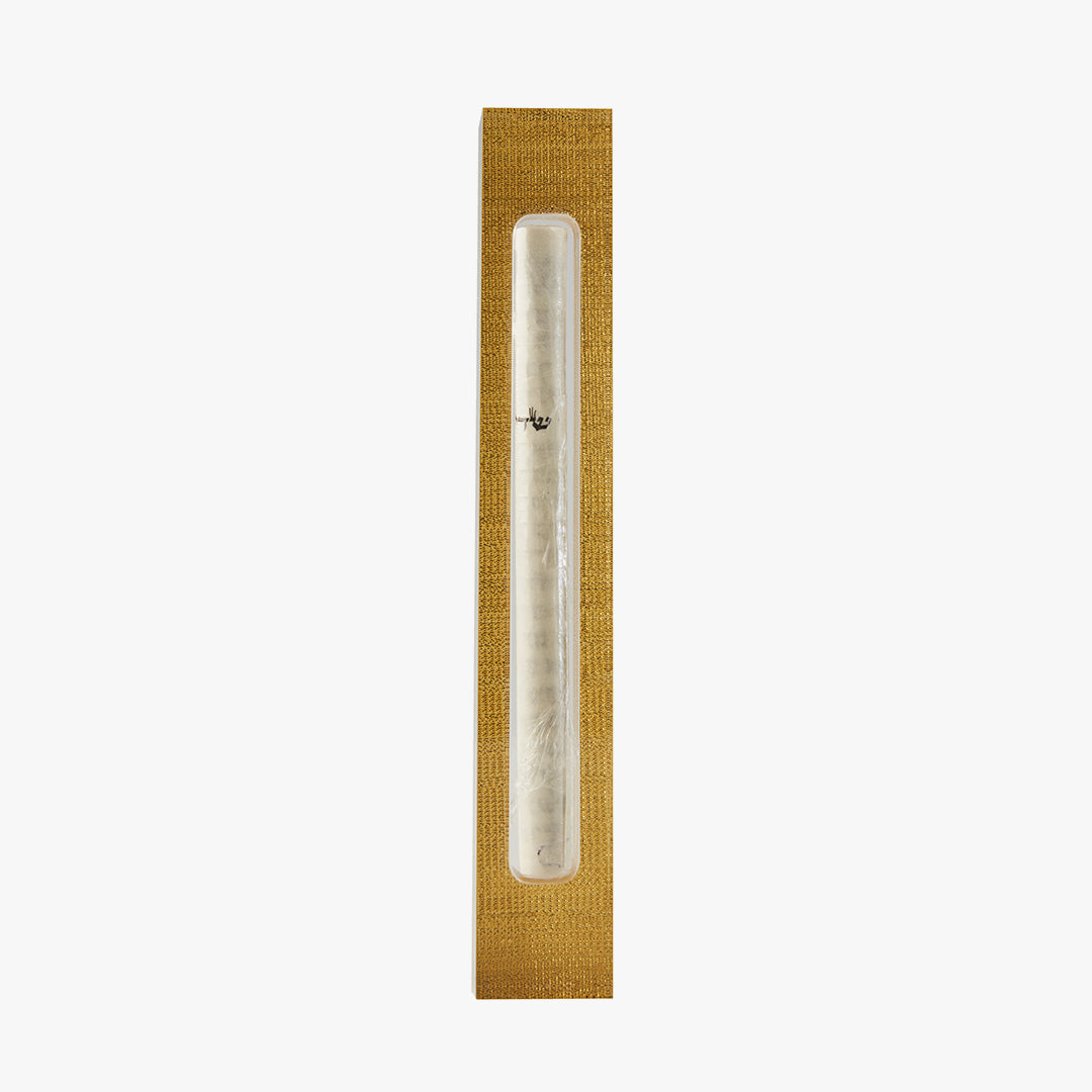 Each Apeloig Collection mezuzah comes in beautiful custom packaging that’s perfect for gift giving. Inside each package you’ll find a double-sided tape that’s specially designed to give your mezuzah the appearance of floating gracefully on your doorpost. If you run out of tape, simply visit our website to get more.